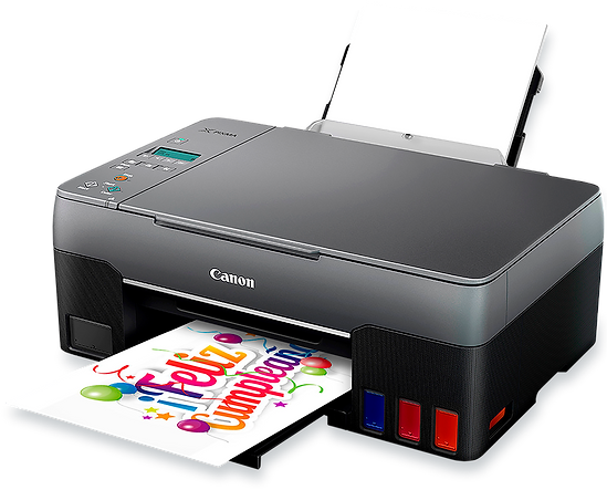 Combo de impresora Canon G3170 adaptada para impresión comestible con sistema continuo integrado, multifuncional y conexión a WI-FI. Con 4 botellas de tinta comestible ICINGINKS de 100ml. c/u y 5 hojas de papel de arroz tamaño carta.